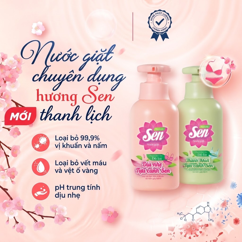 Nước giặt chuyên biệt cho đồ lót Sen là sản phẩm được thiết kế dành riêng cho việc giặt các loại đồ lót như: