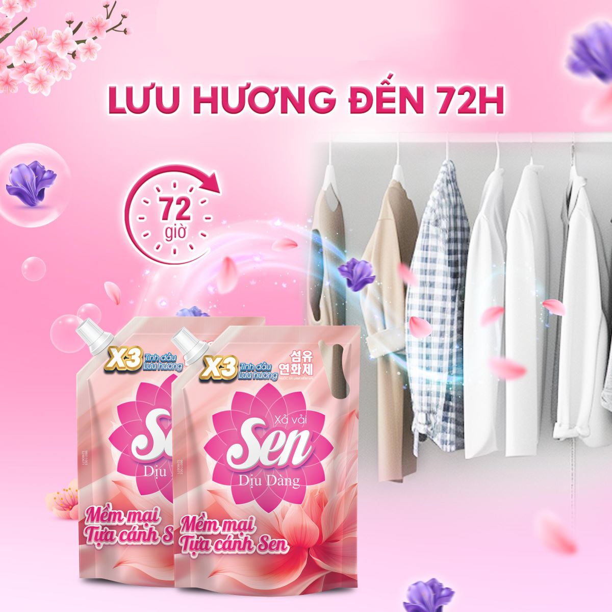 Mỗi lần giặt giũ, hương sen thanh khiết lan tỏa khắp không gian – vừa trong trẻo, vừa thư giãn. Áo quần sau khi khô vẫn giữ được độ mềm tự nhiên và hương thơm tinh tế, giúp bạn tự tin suốt cả ngày dài.