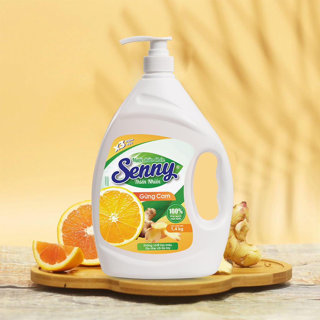 • Senny Gừng Cam 1.4kg – Khử mùi tanh, bát đĩa sáng bóng, hương thơm ấm áp.