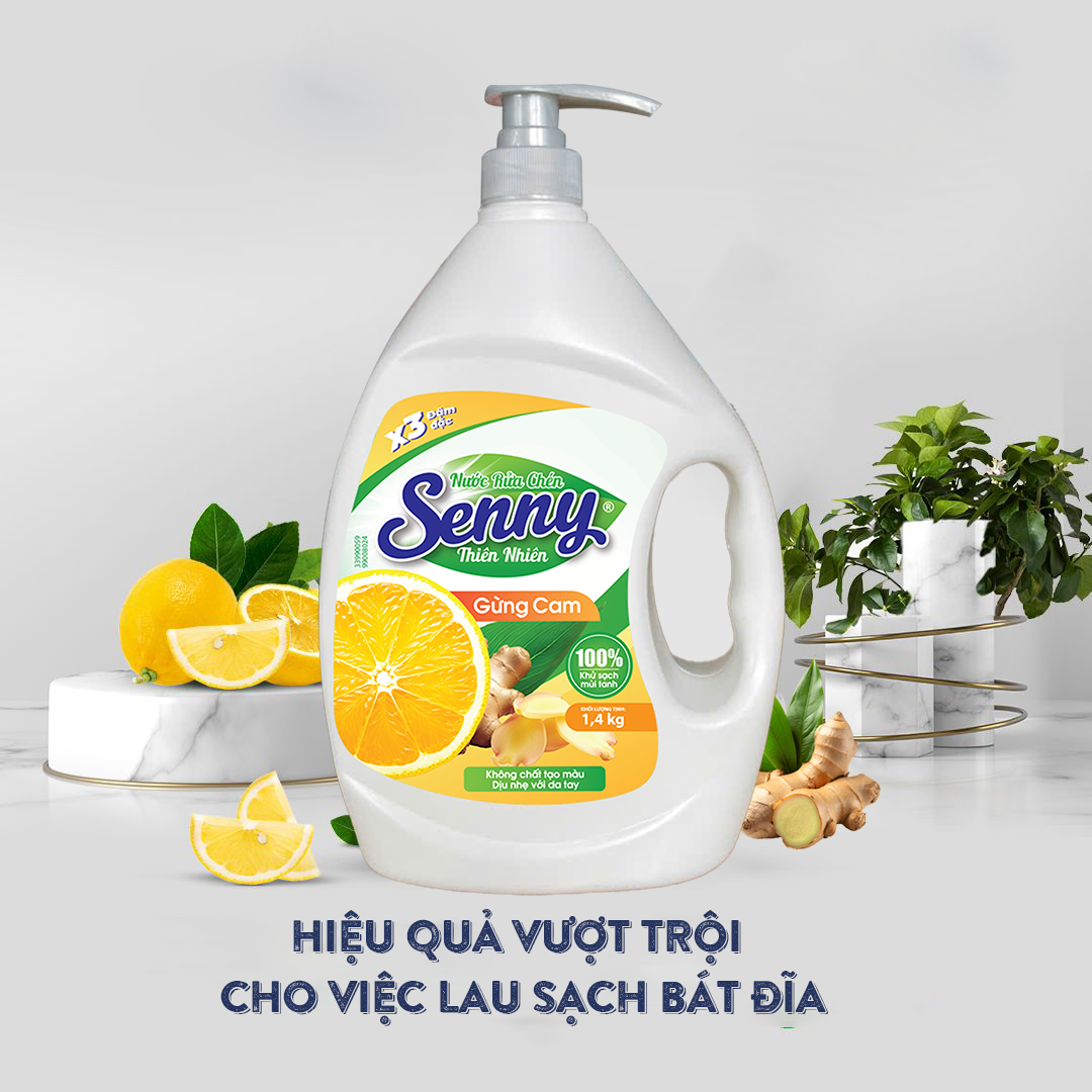 | Tiêu chí | Senny Gừng Cam | Nước rửa chén thường |