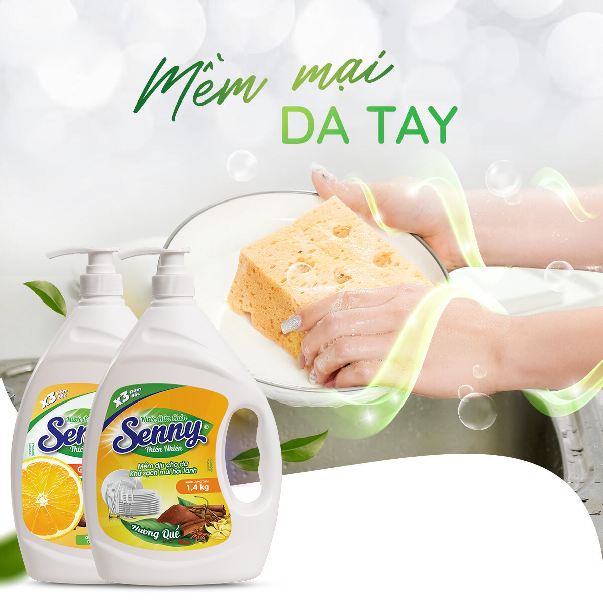 Nước rửa chén Senny thiên nhiên: Chén Đĩa Sáng Mới – Không Lo Hóa Chất