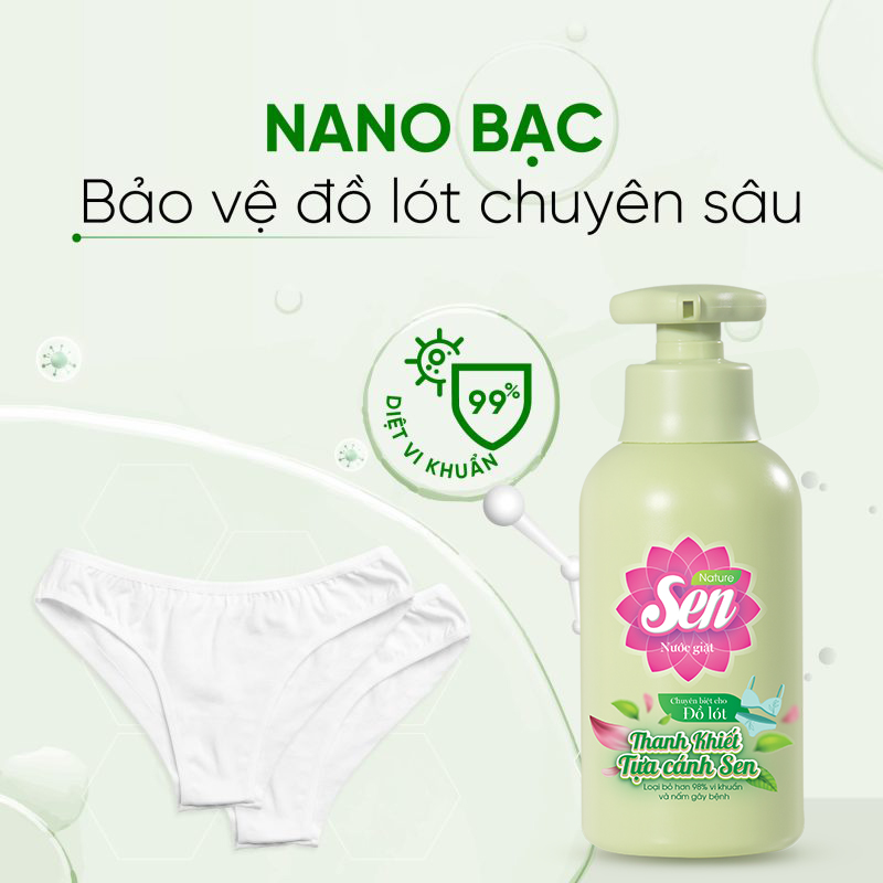 Sạch thoáng, tự tin – Bất chấp ngày dâu, vì đã có Nước Giặt Đồ Lót Sen. Dịu nhẹ cho da – Sạch sâu cho từng sợi vải.