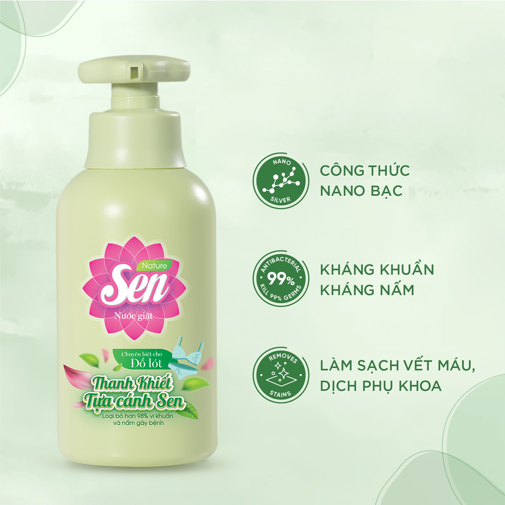 Giặt sạch – Khử mùi – Diệt khuẩn không còn là điều khó khăn khi bạn có Nước Giặt Đồ Lót Sen – giải pháp giặt giũ dịu nhẹ, an toàn nhưng vô cùng hiệu quả dành riêng cho đồ lót.